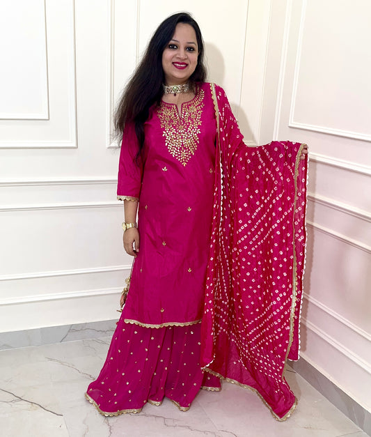 Beautiful Hand Embroidered Gota Work Sharara Suit in Hot Pink Colour