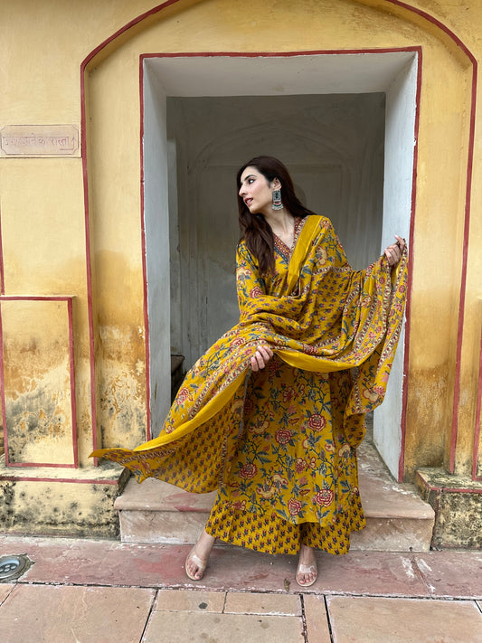 Bagicha A line Suit set-Yellow Colour
