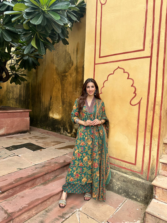 Bagicha A line Suit set-Green Colour