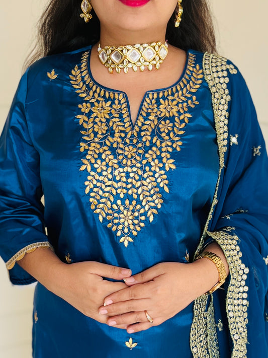 Hand Embroidered Gota Work Sharara Suit Teal Colour