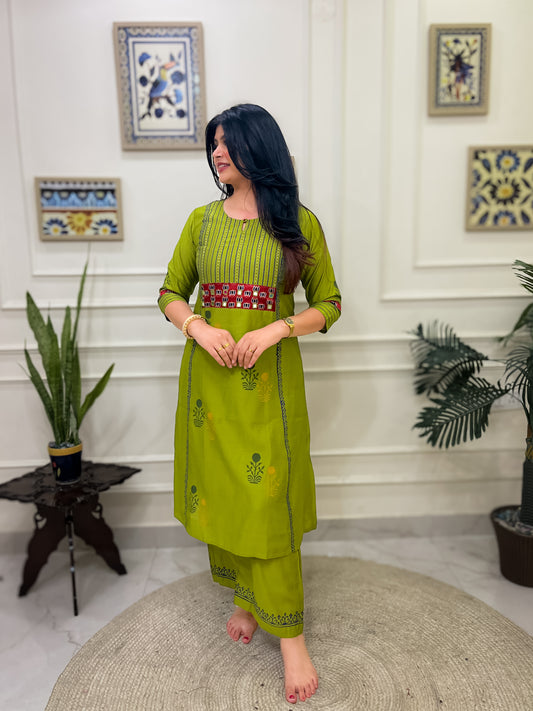Green Aline 2 piece premium Silk Cotton Suit Set- Yellow