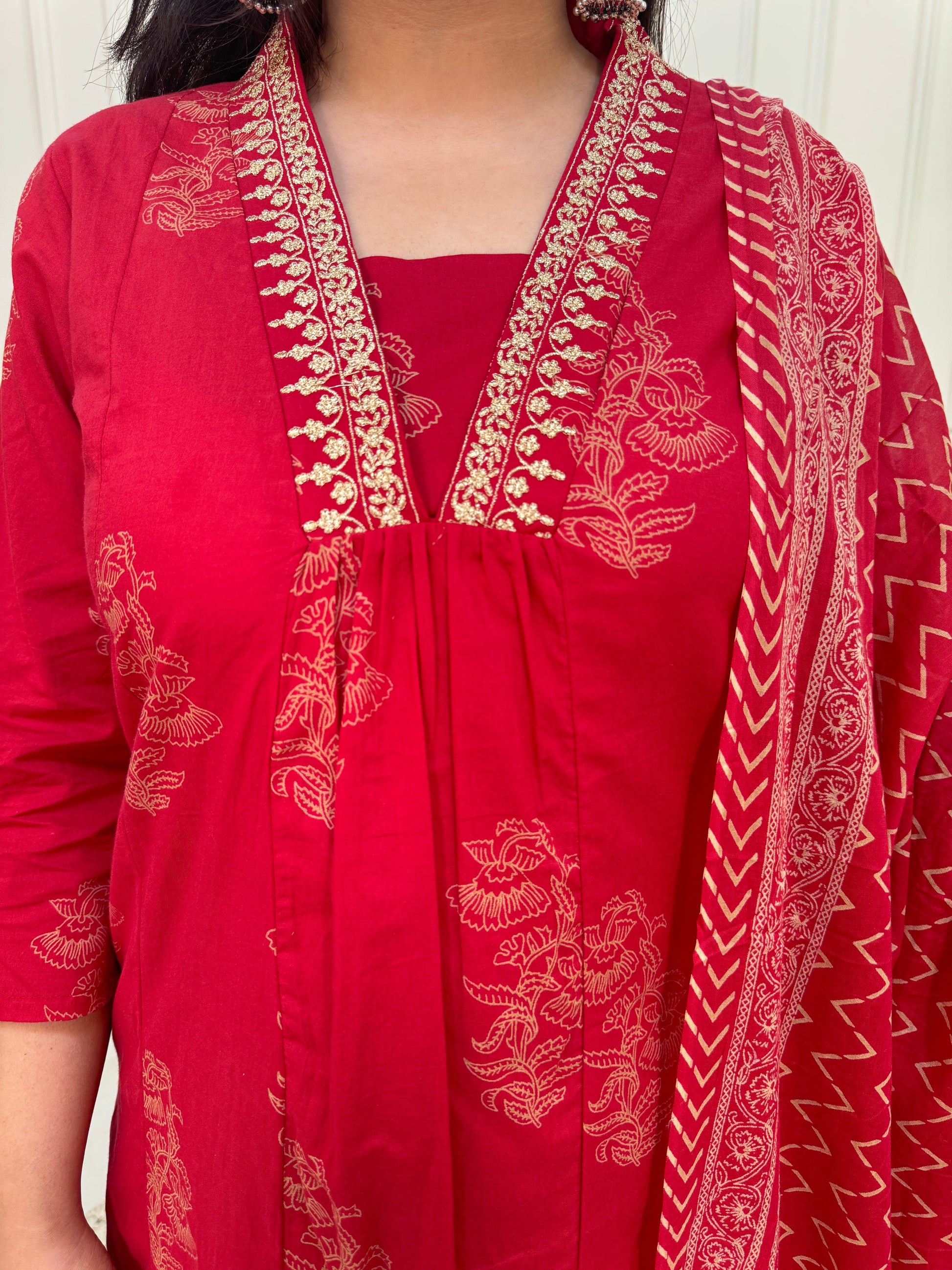 Red Aline 2 piece premium Silk Cotton Suit Set- Red