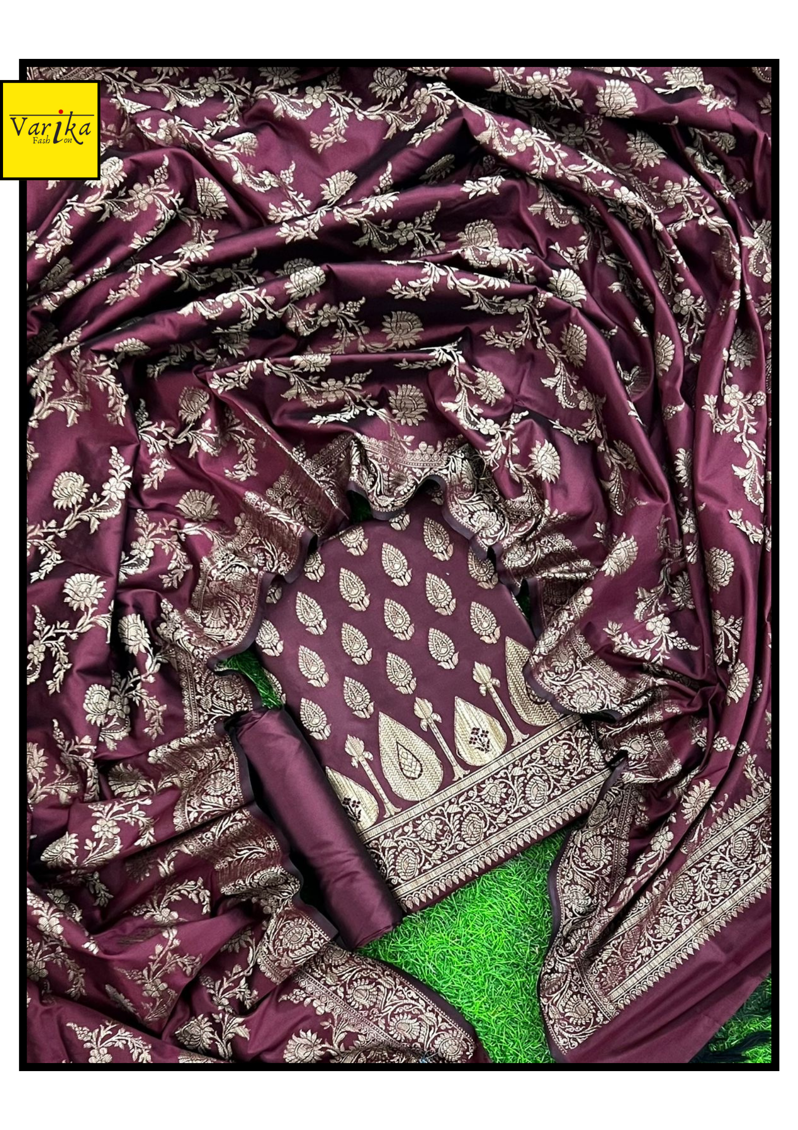 Banarasi Semi Silk Unstitched Suit with Heavy Dupatta