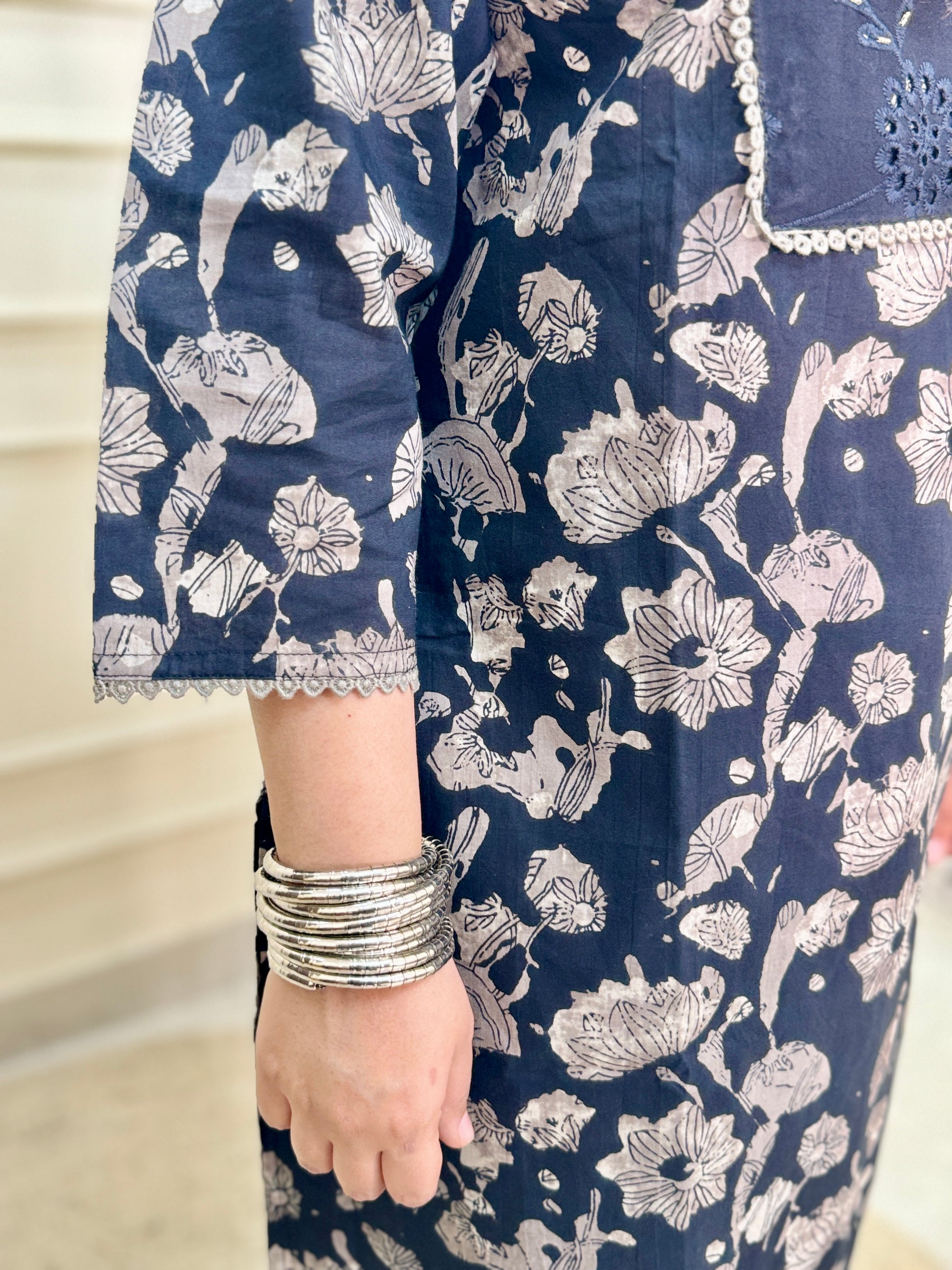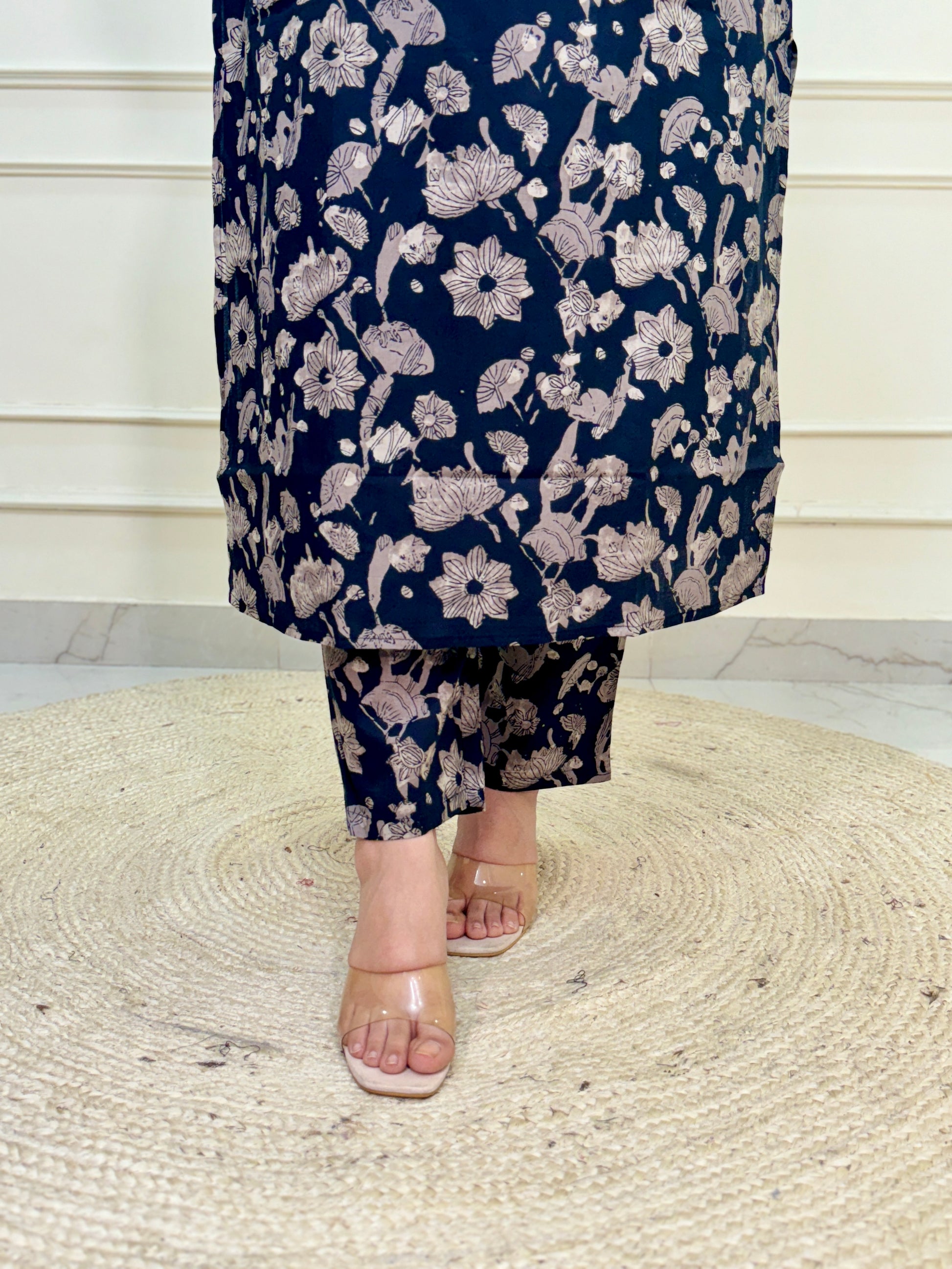 Ajrakh A line Suit set-Navy Blue Colour