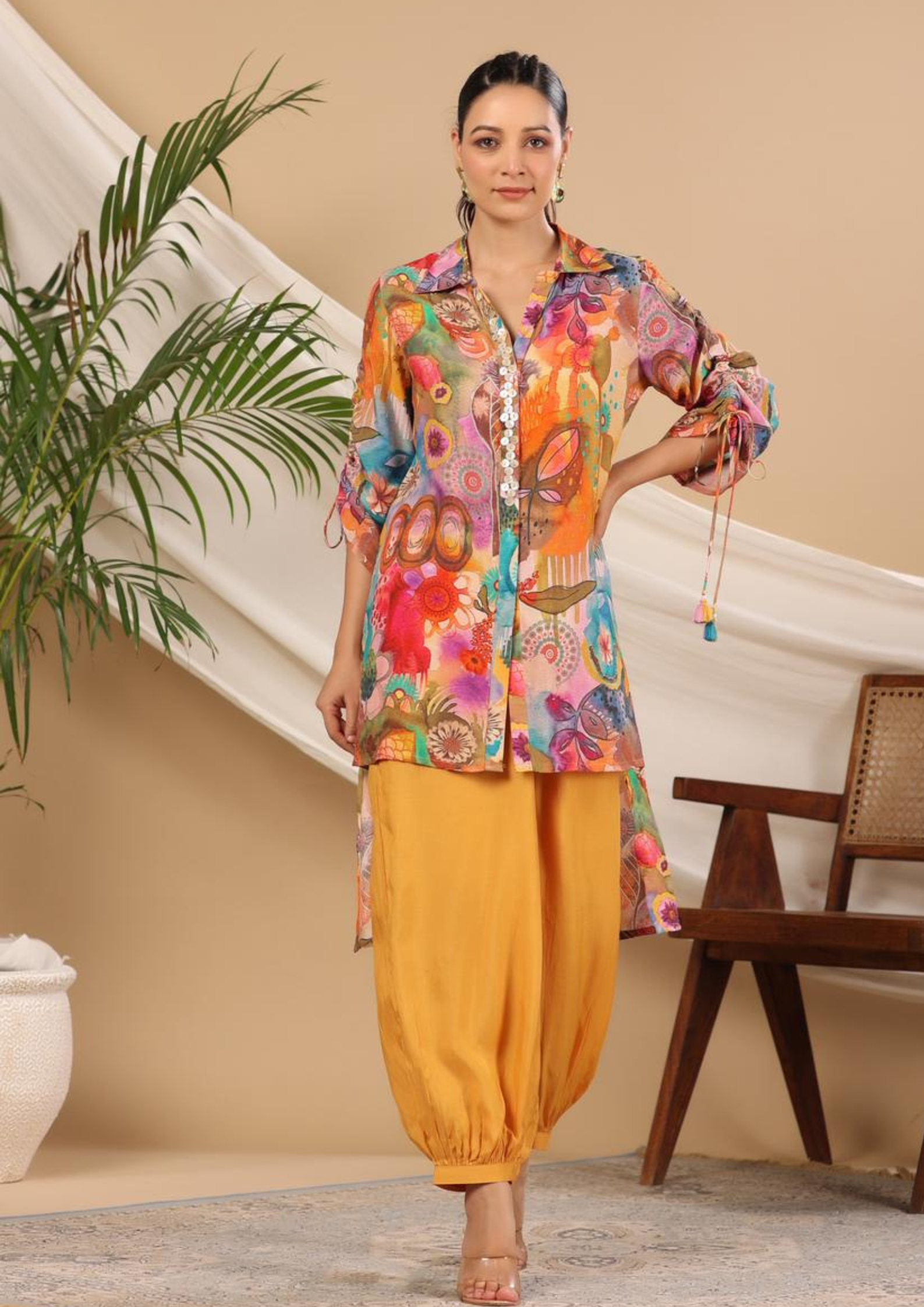 Printed Coord Set with Afghani pants. Pure Muslin fabric makes the coord set comfortable and breathable to wear.
