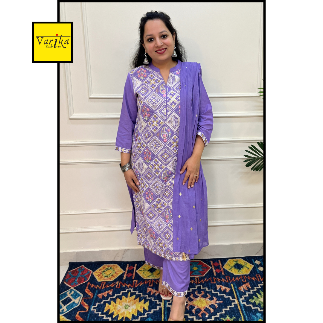 Ambi Embroidered Upada Silk Lavender Aline 3pc Suit