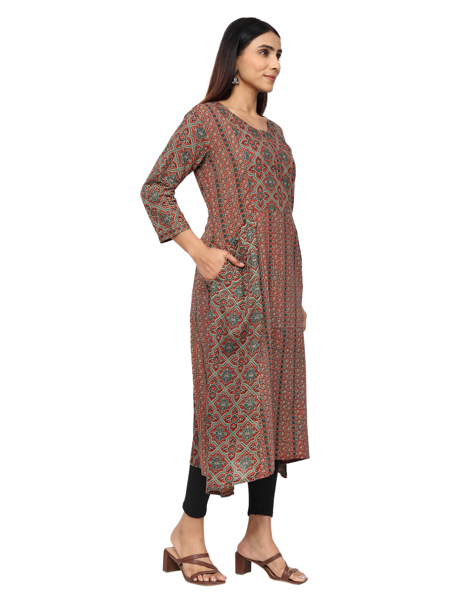 Pure Cotton Kurti in Ajrakh Print in Aline pattern.