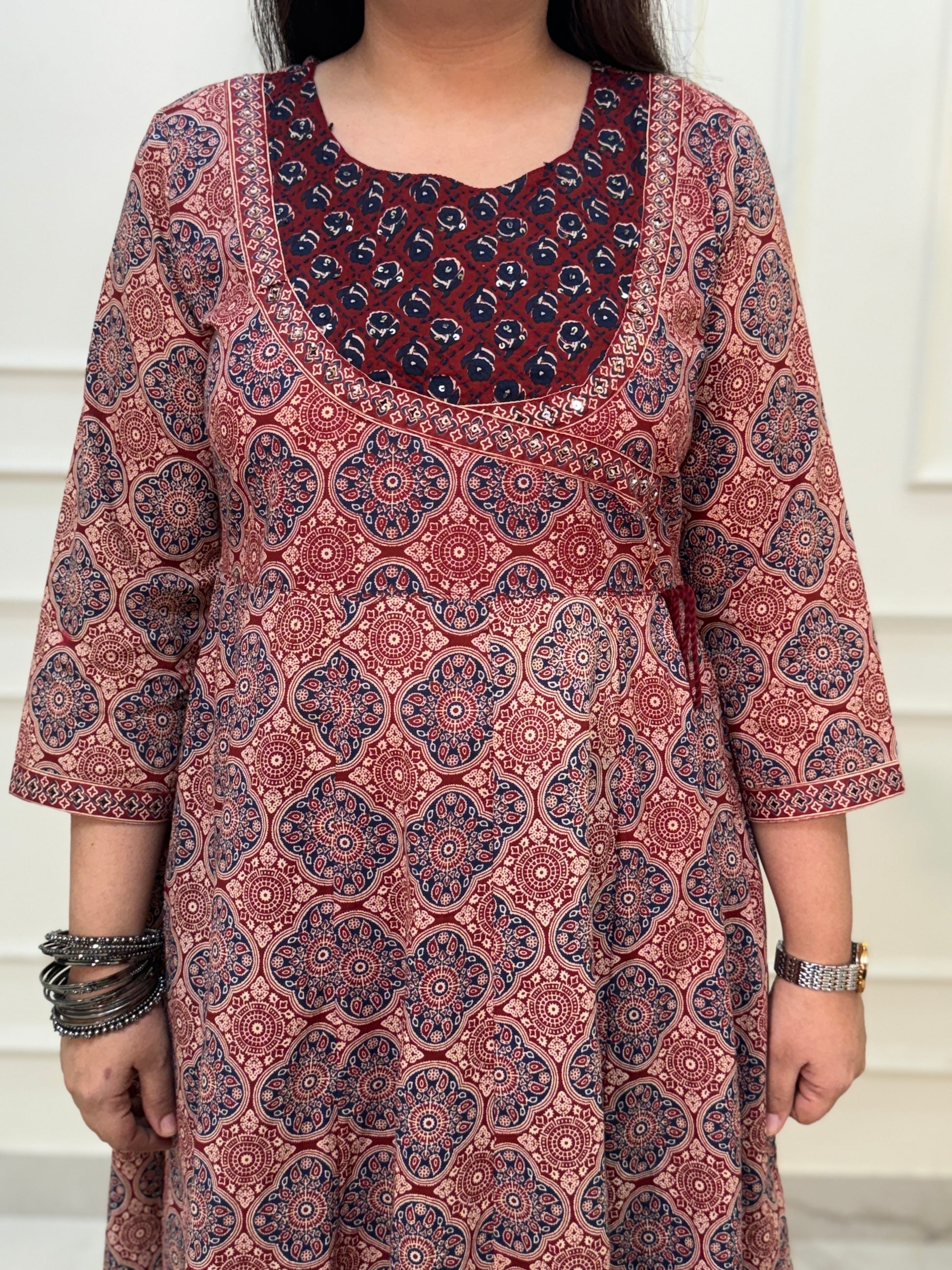 Gamthi Anarkali Suit set with mirror work- Wine Colour