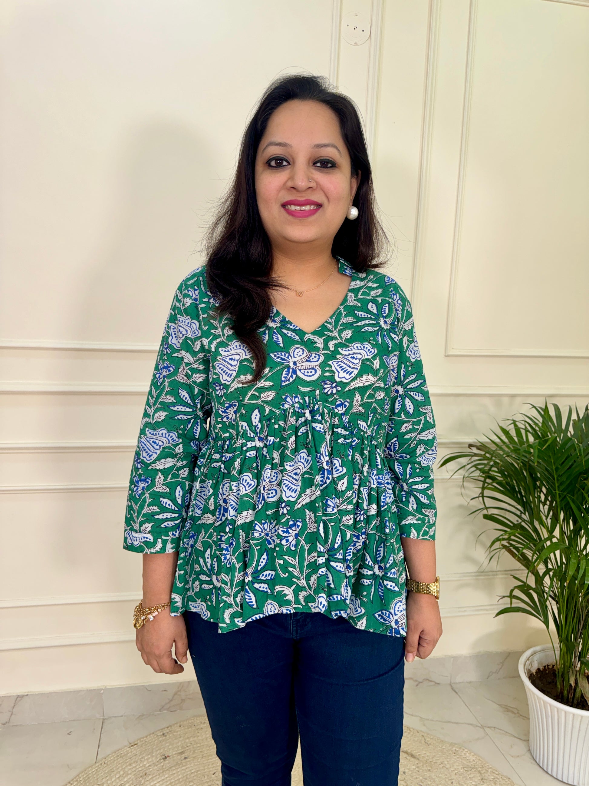Gather Designer Top to be worn with trousers and jeans is all you need this summer.