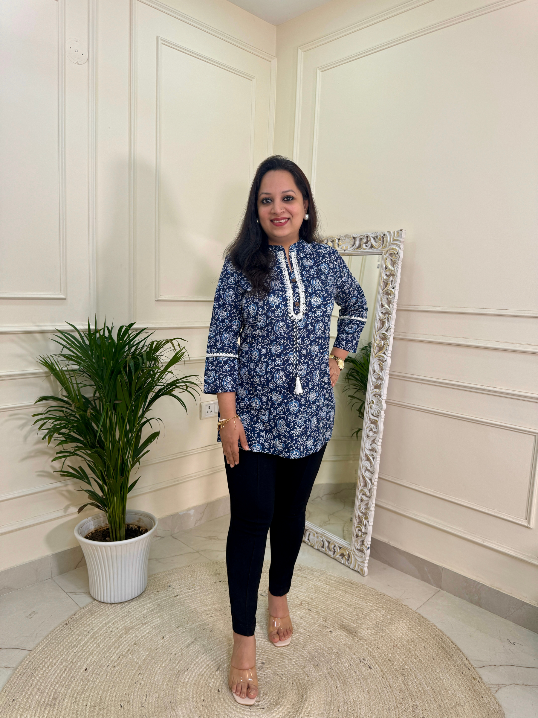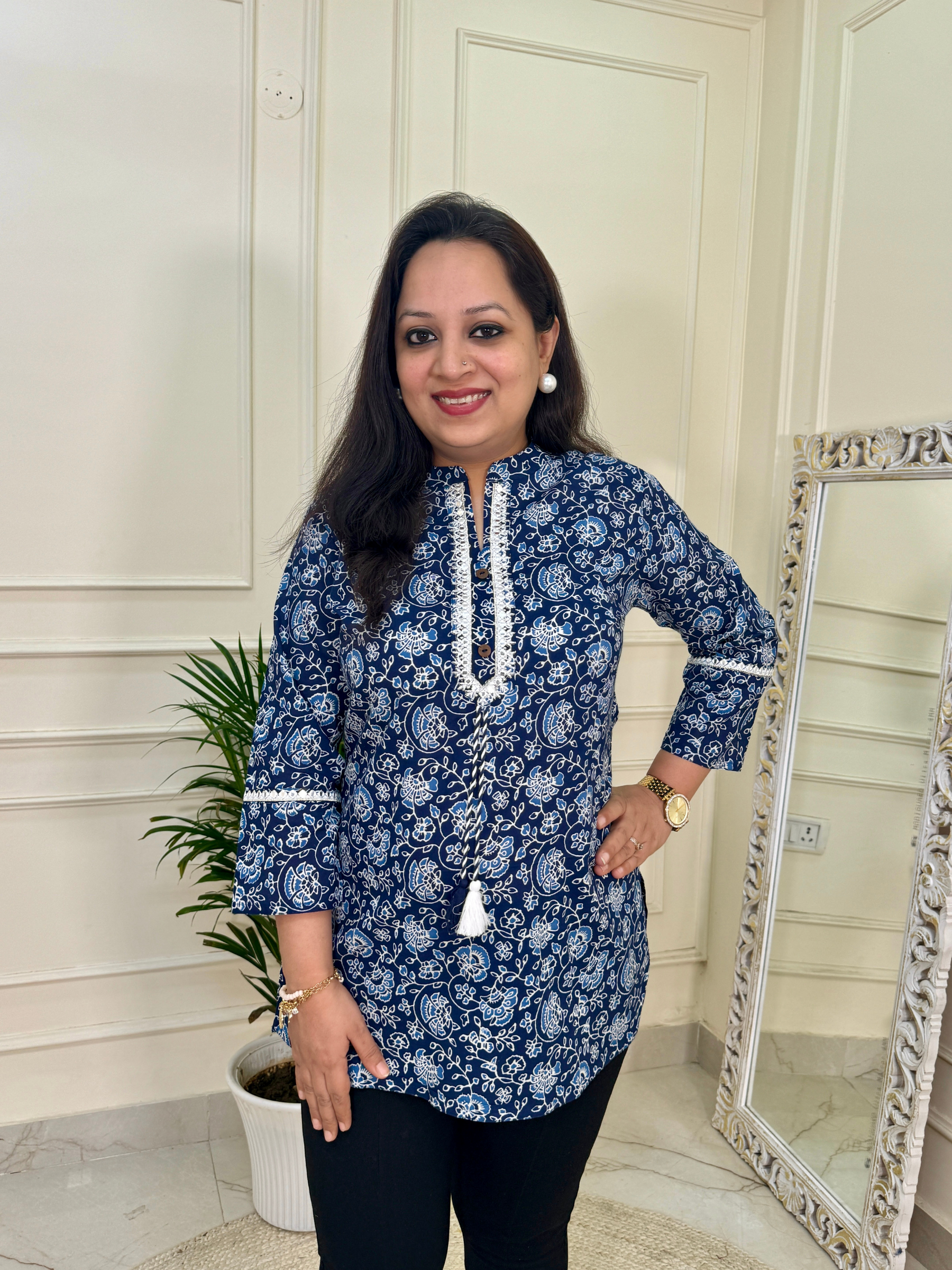 Short Kurti to be worn with trousers and jeans is all you need this summer.