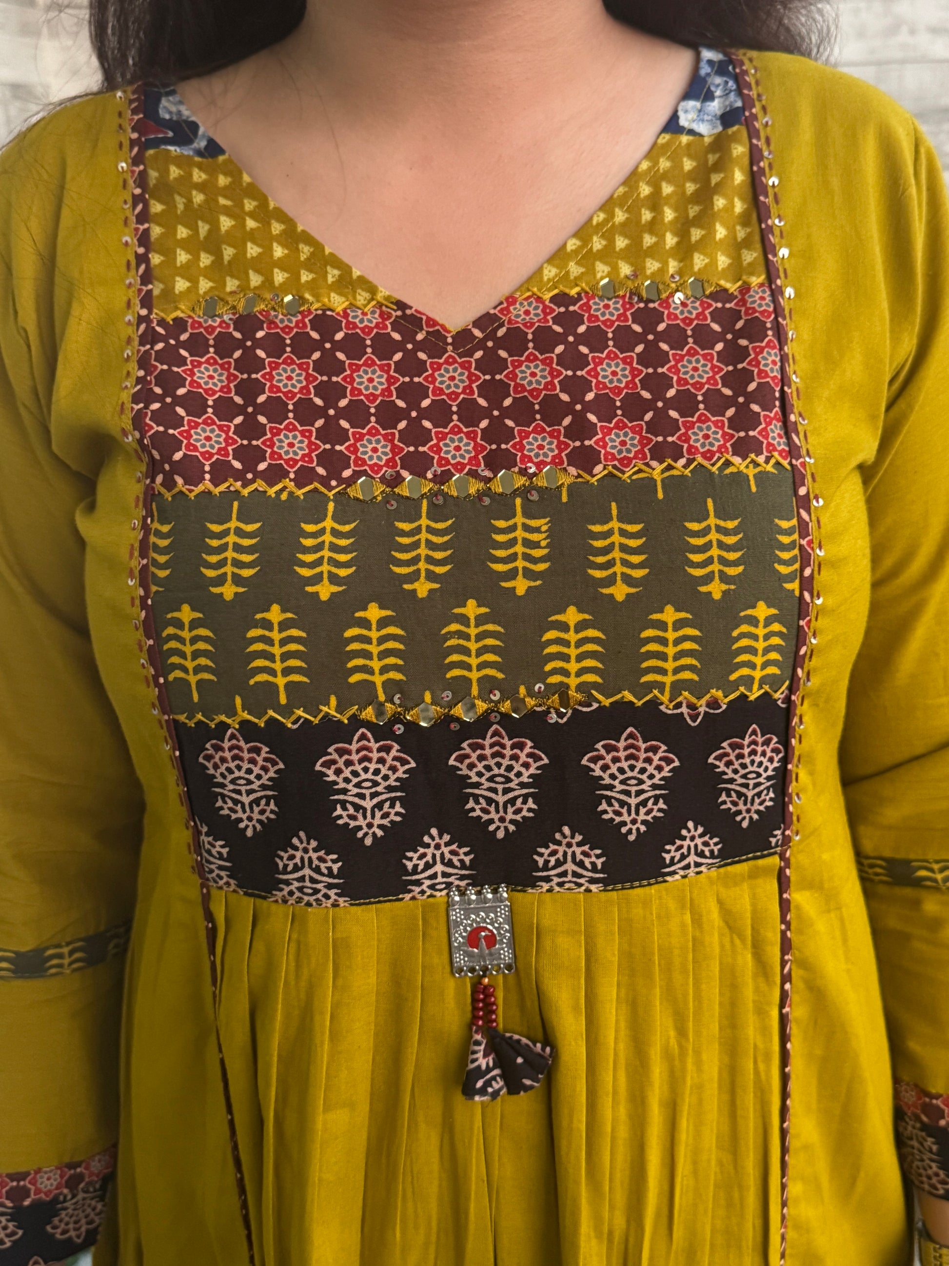 Gamthi Anarkali Suit set with mirror work- Mustard Colour