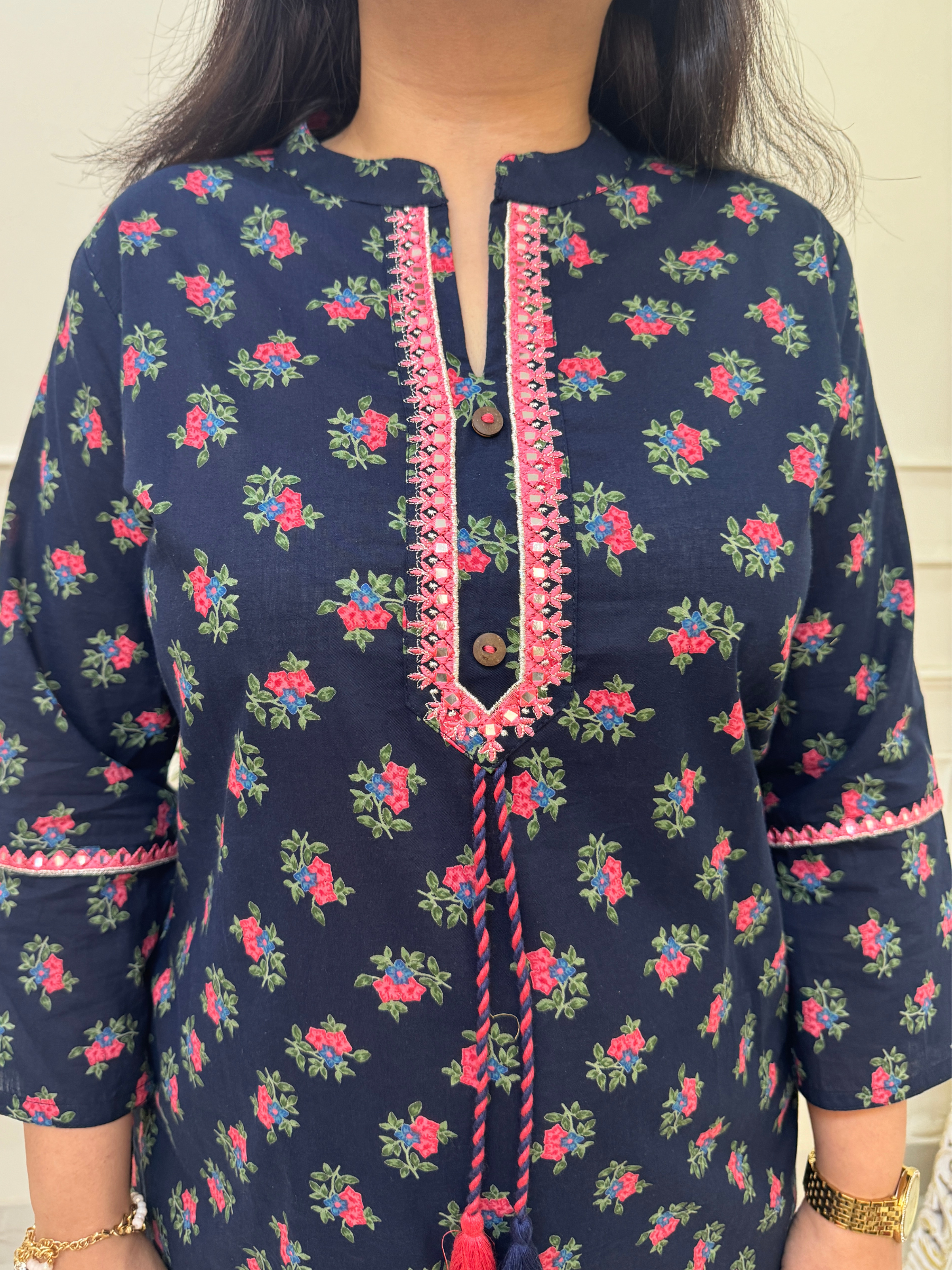 Pure Cotton Short Kurti with light embroidery on the neck.