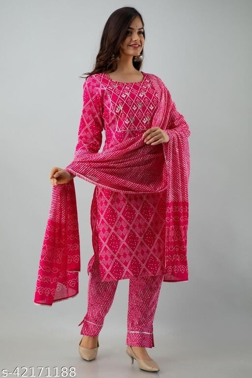 Pink Bandhani 3 pc Rayon Casual Wear suit