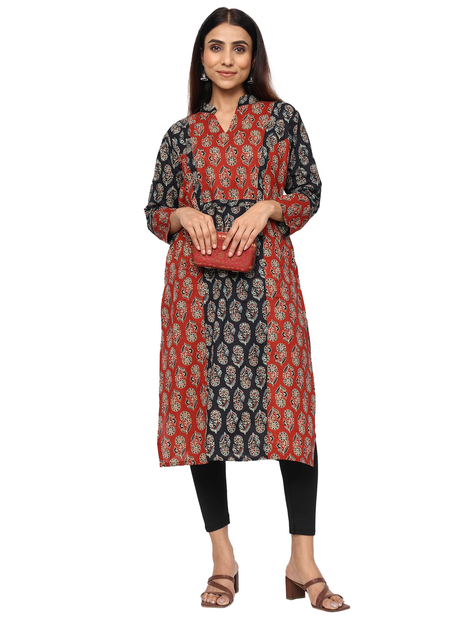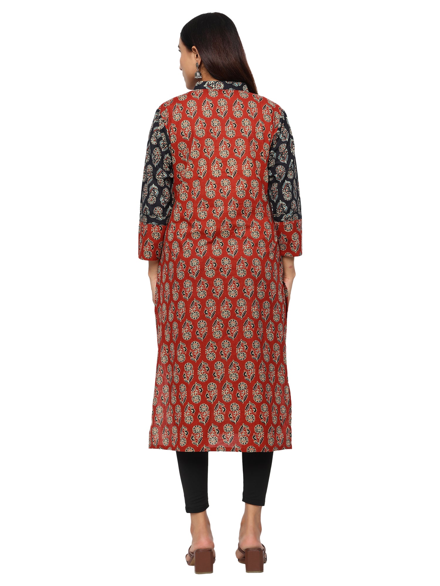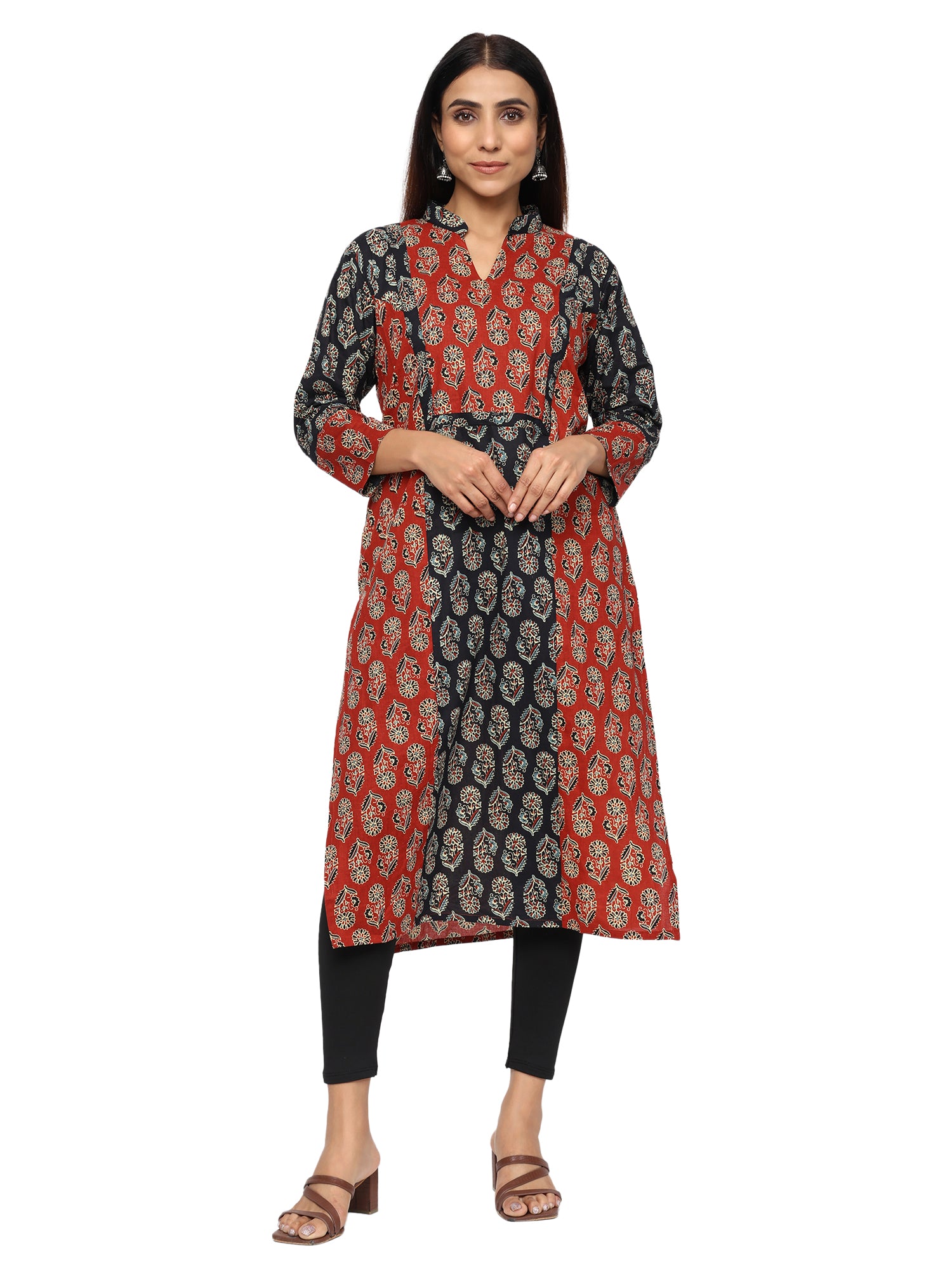 Pure Cotton Kurti in Princess Cut in Dual Colour Contrast
