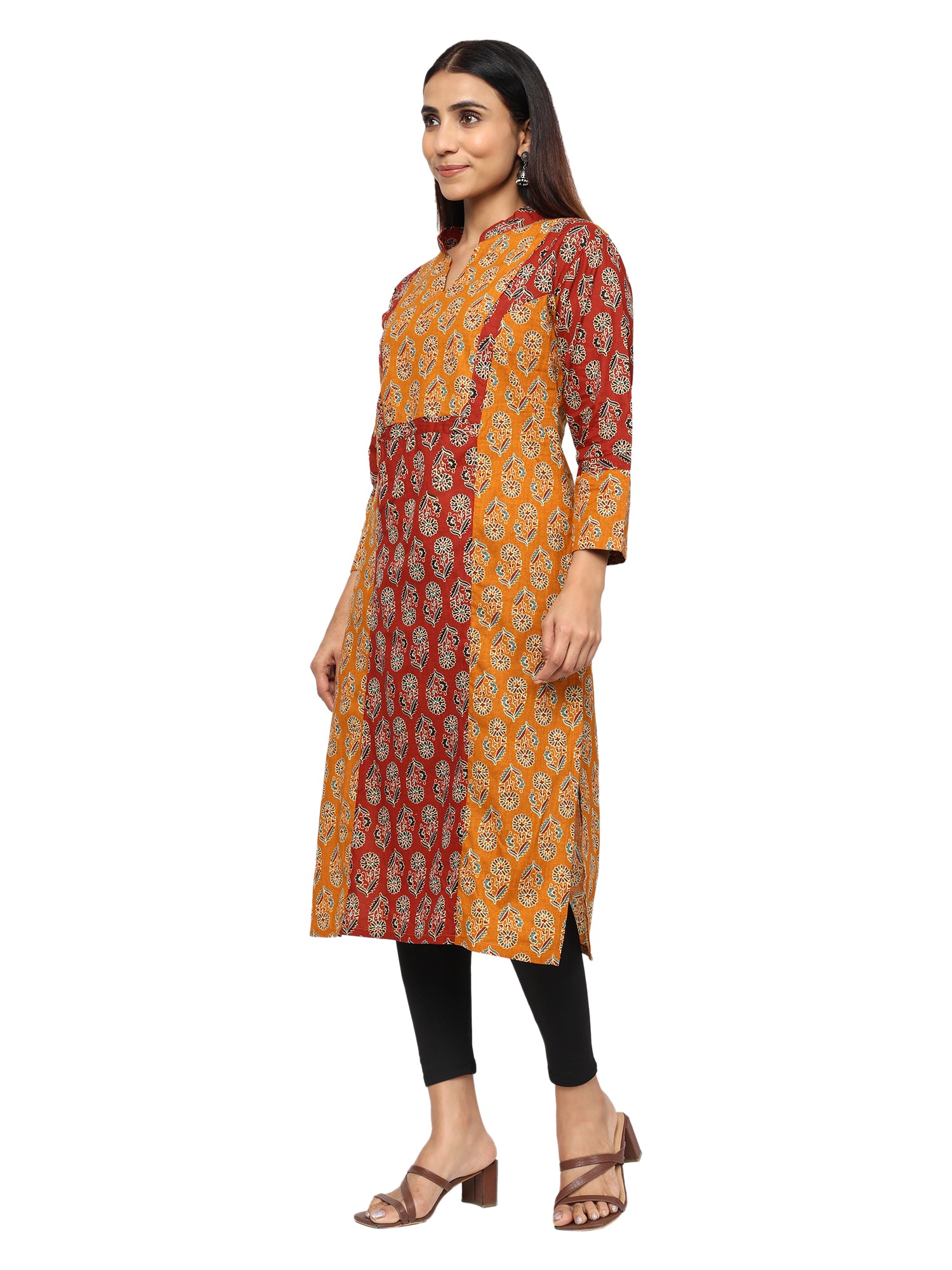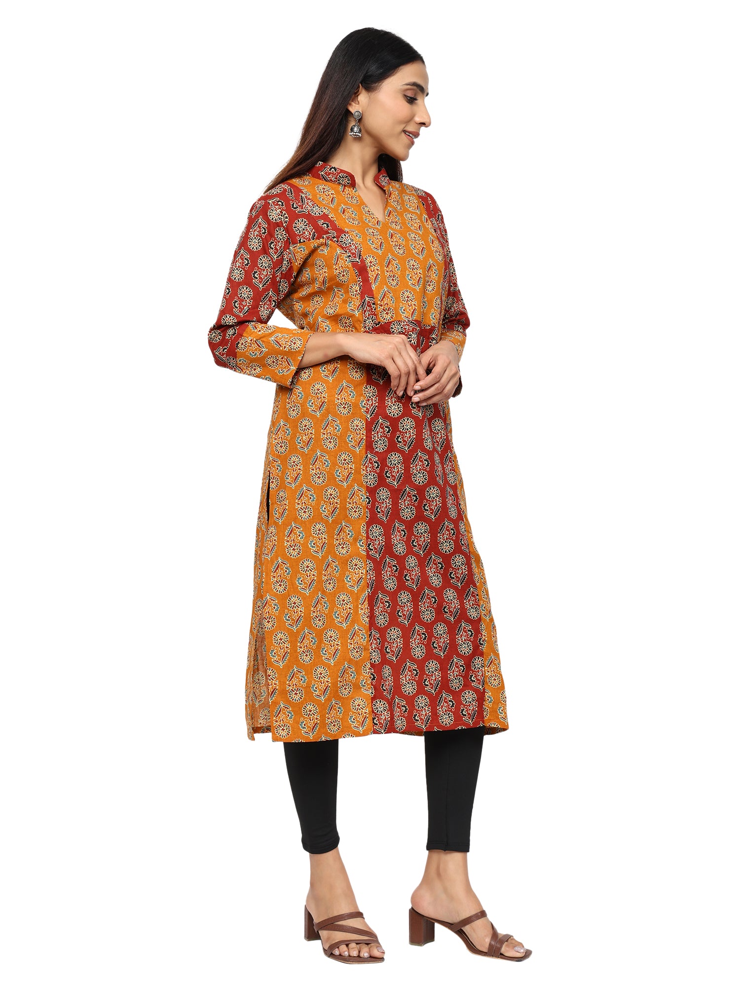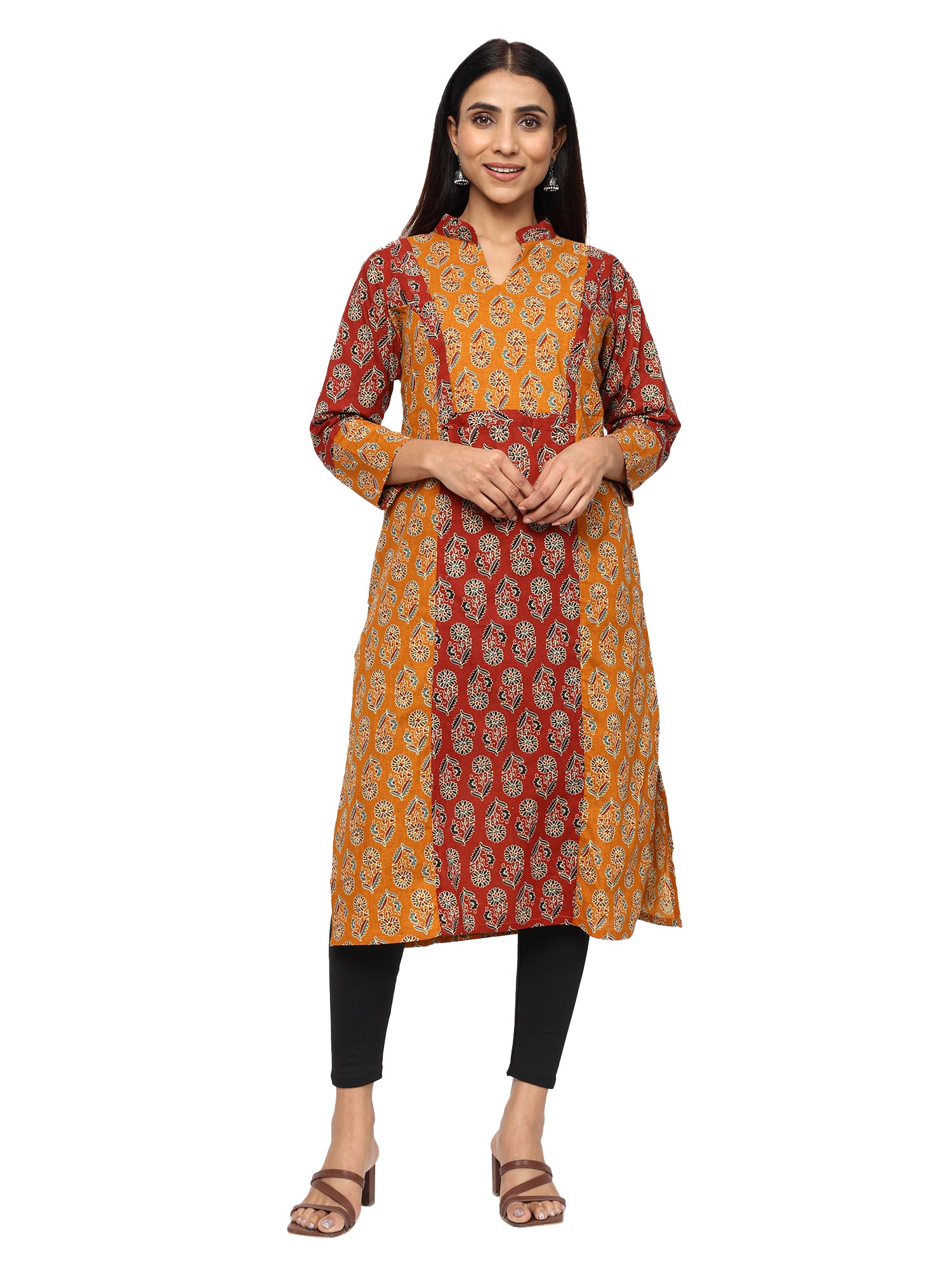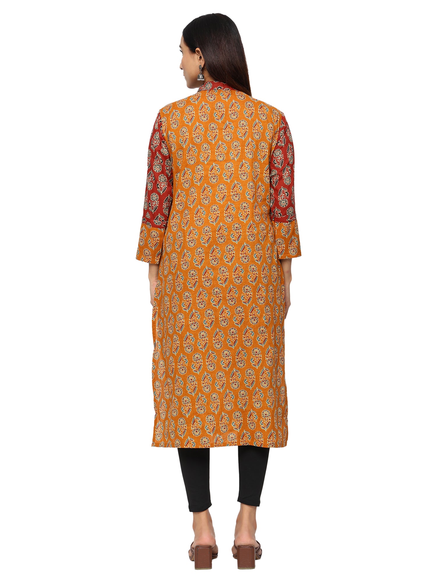 Princess Line Kurti in Pure Cotton-Maroon Mustard
