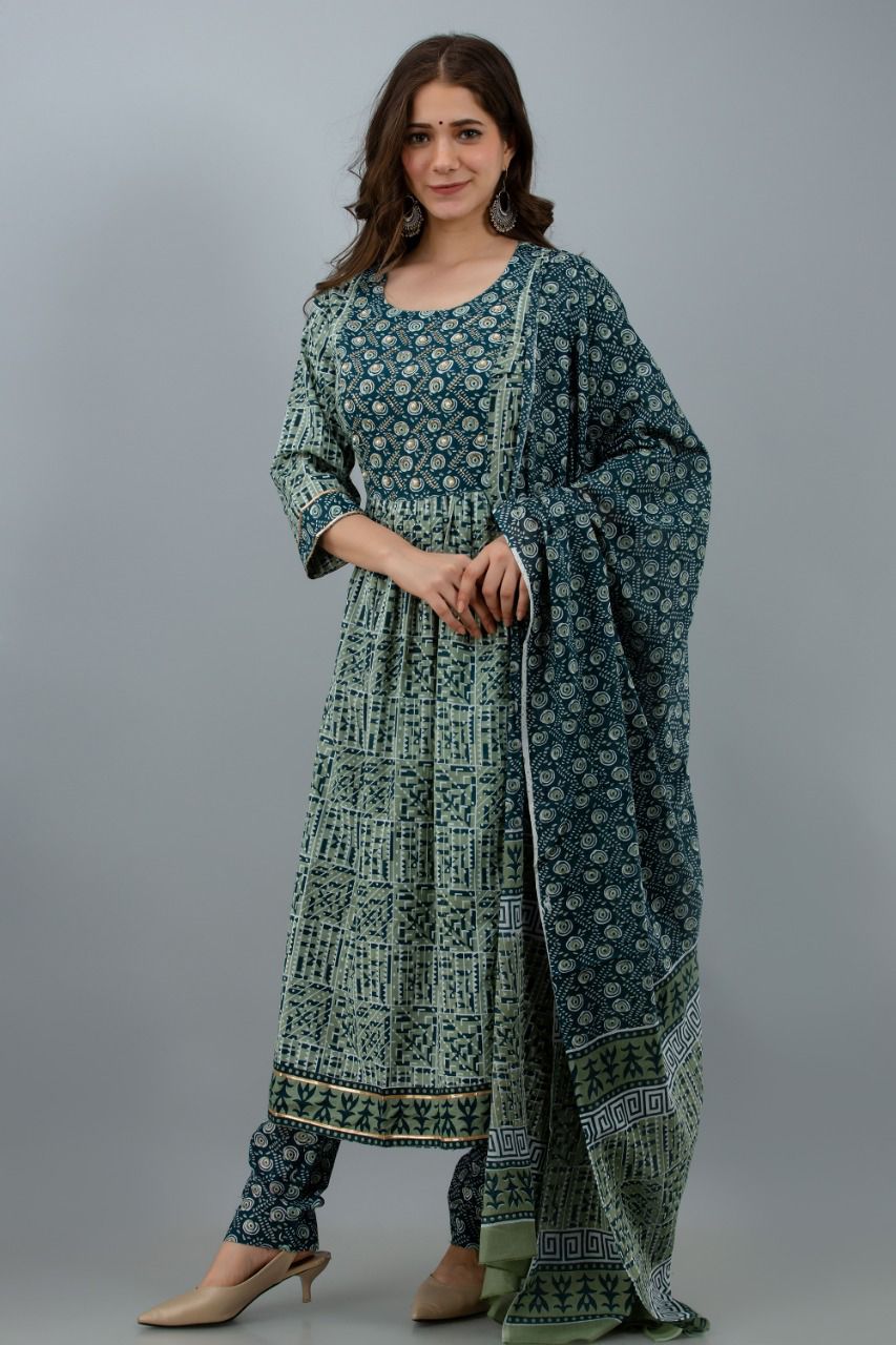 Ajrakh Anarkali Suit set-Navy Black Colour
