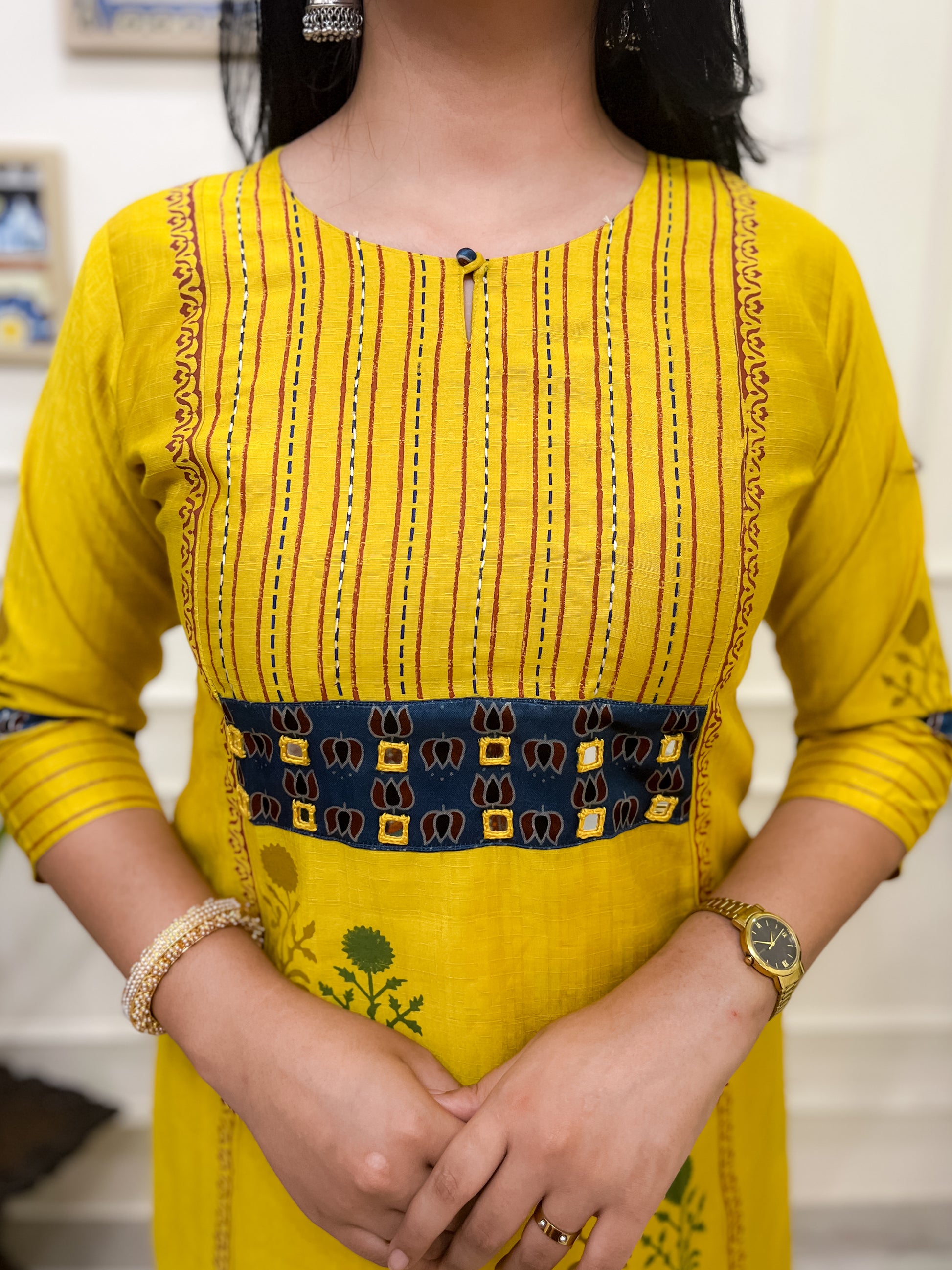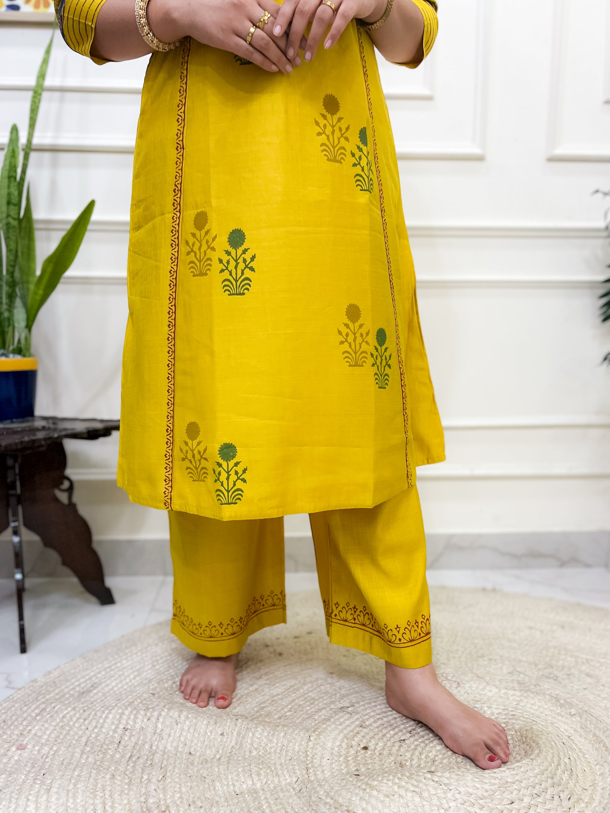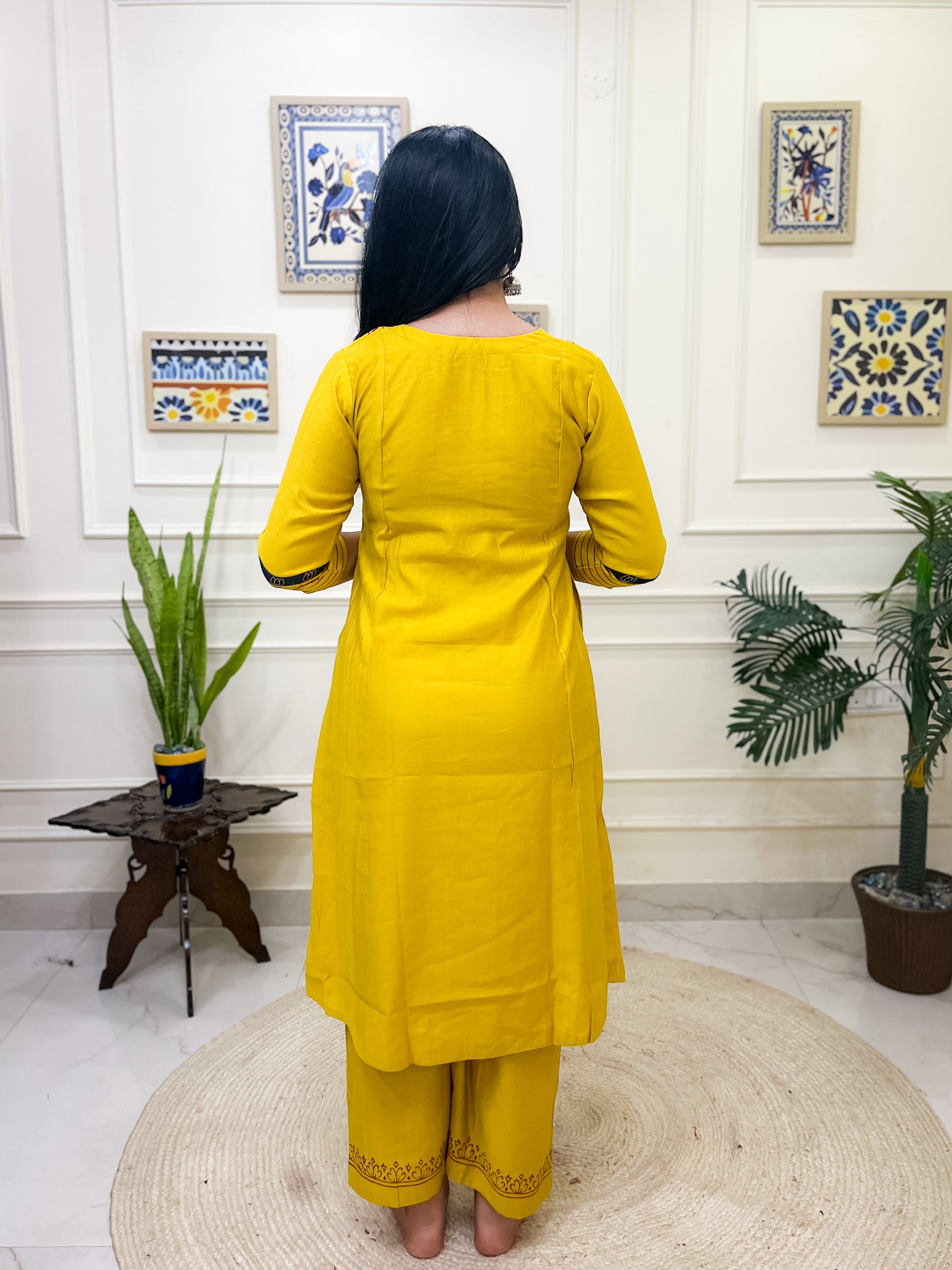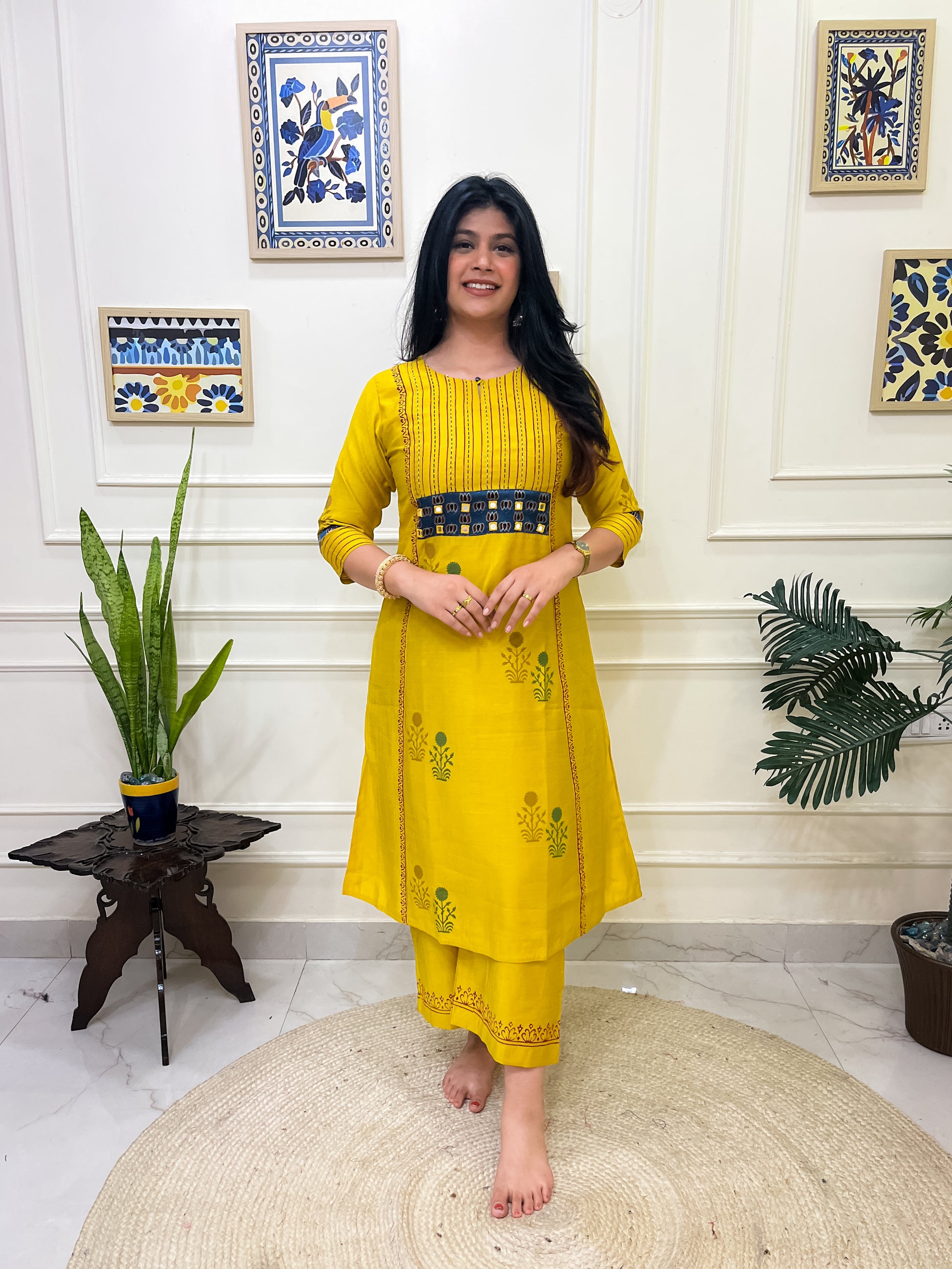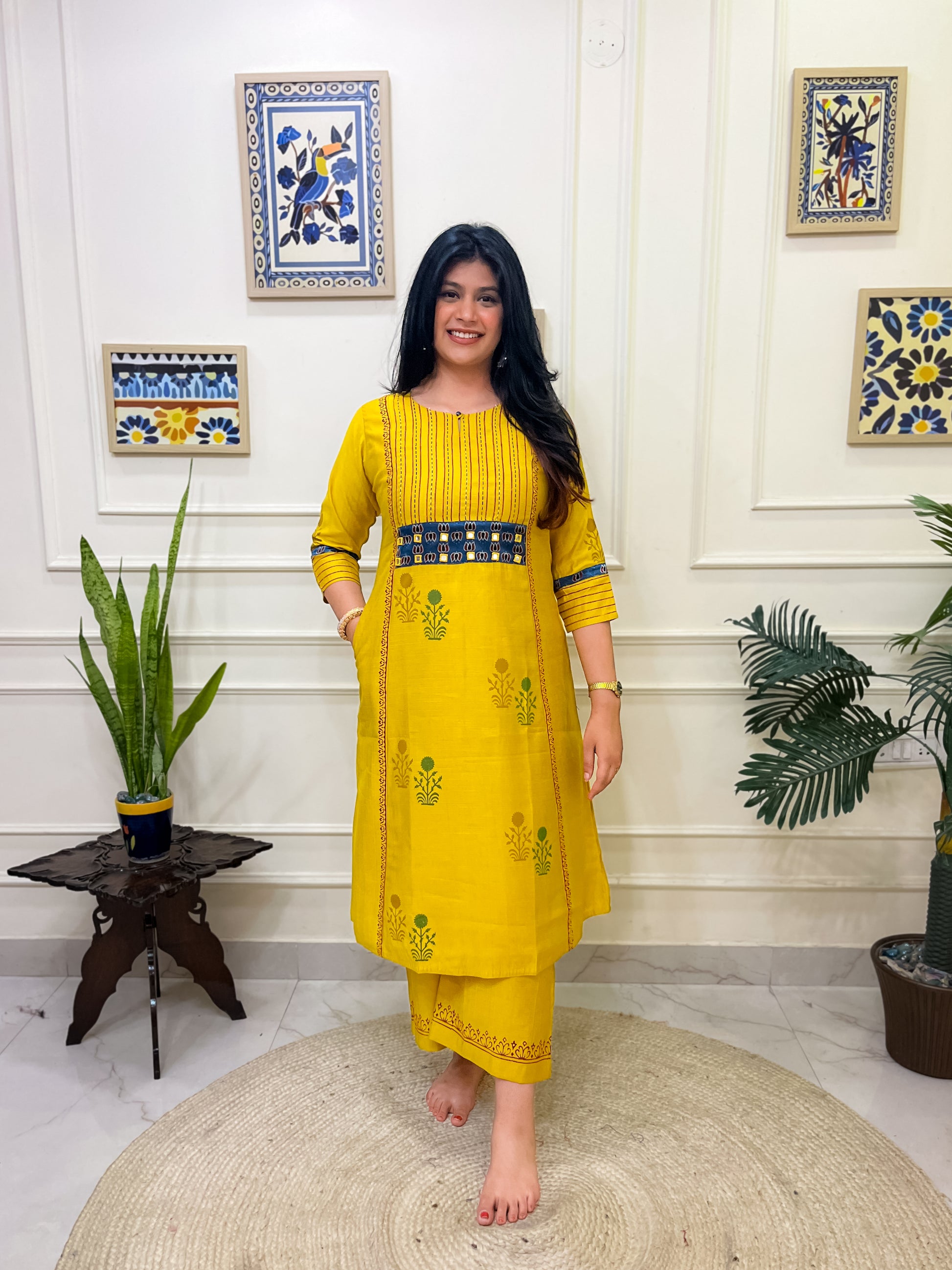 Yellow Aline 2 piece premium Silk Cotton Suit Set with Pockets- Yellow