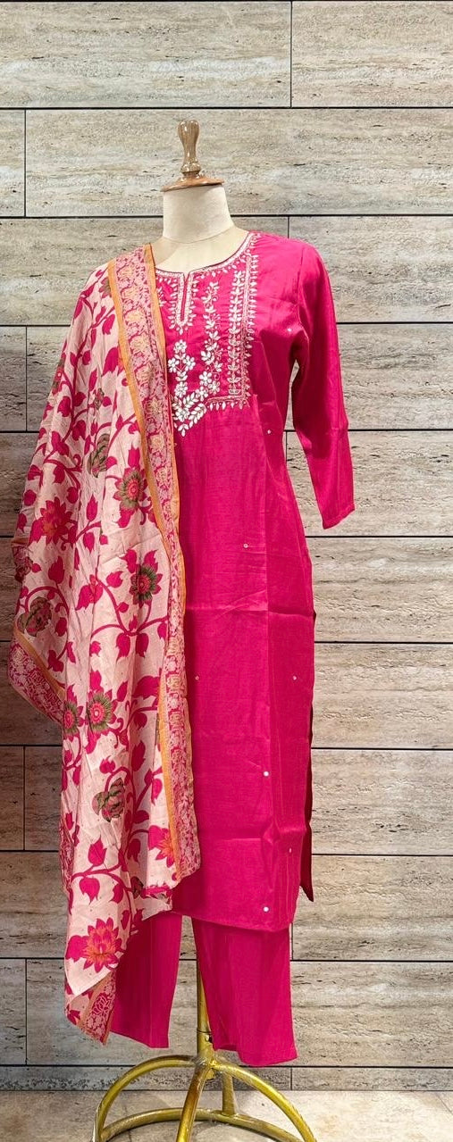 Hand Embroiery Dola Silk Red Colour 3pc Suit