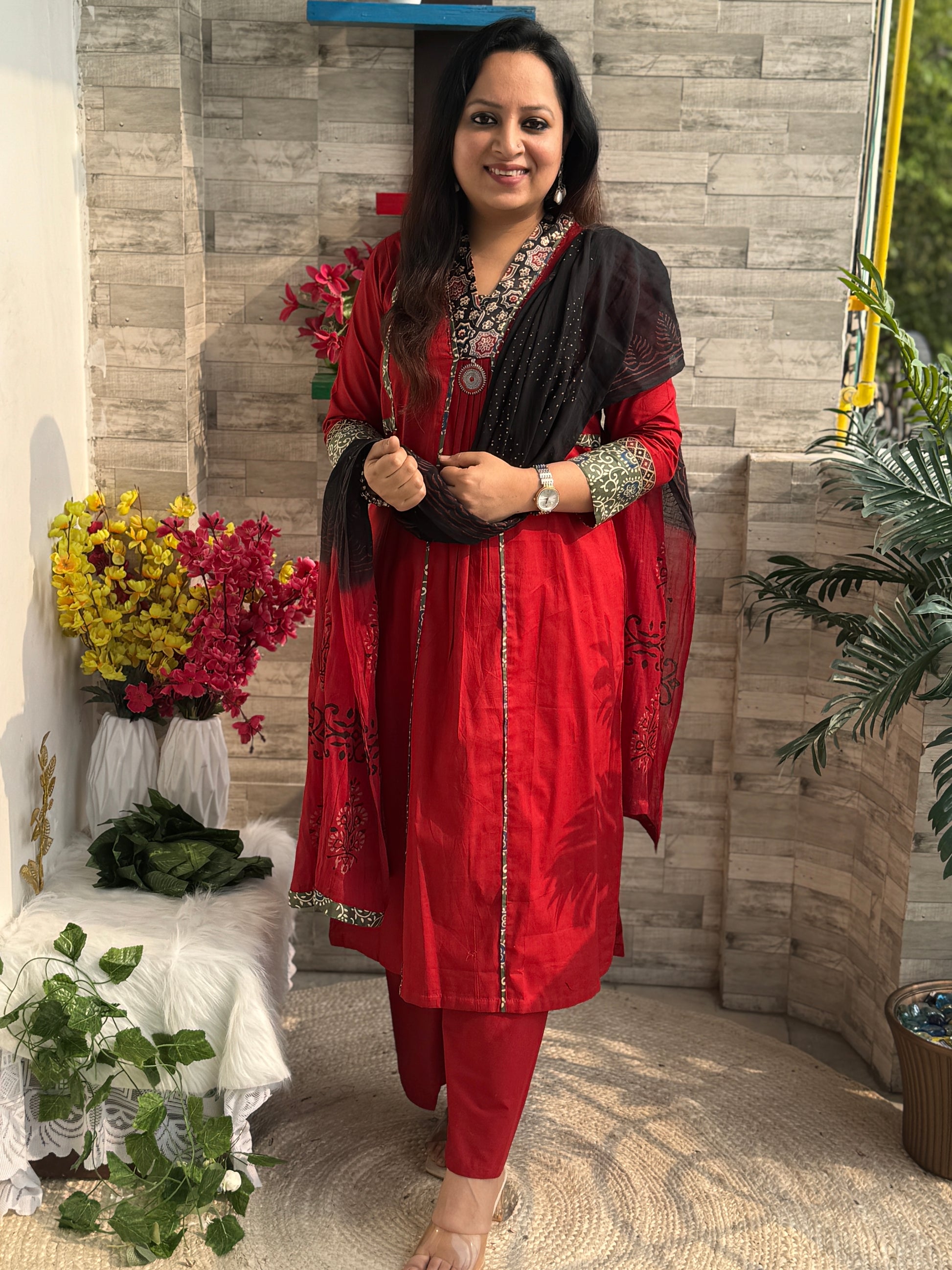 Siya Aline 3 piece premium Cotton Suit Set- Red
