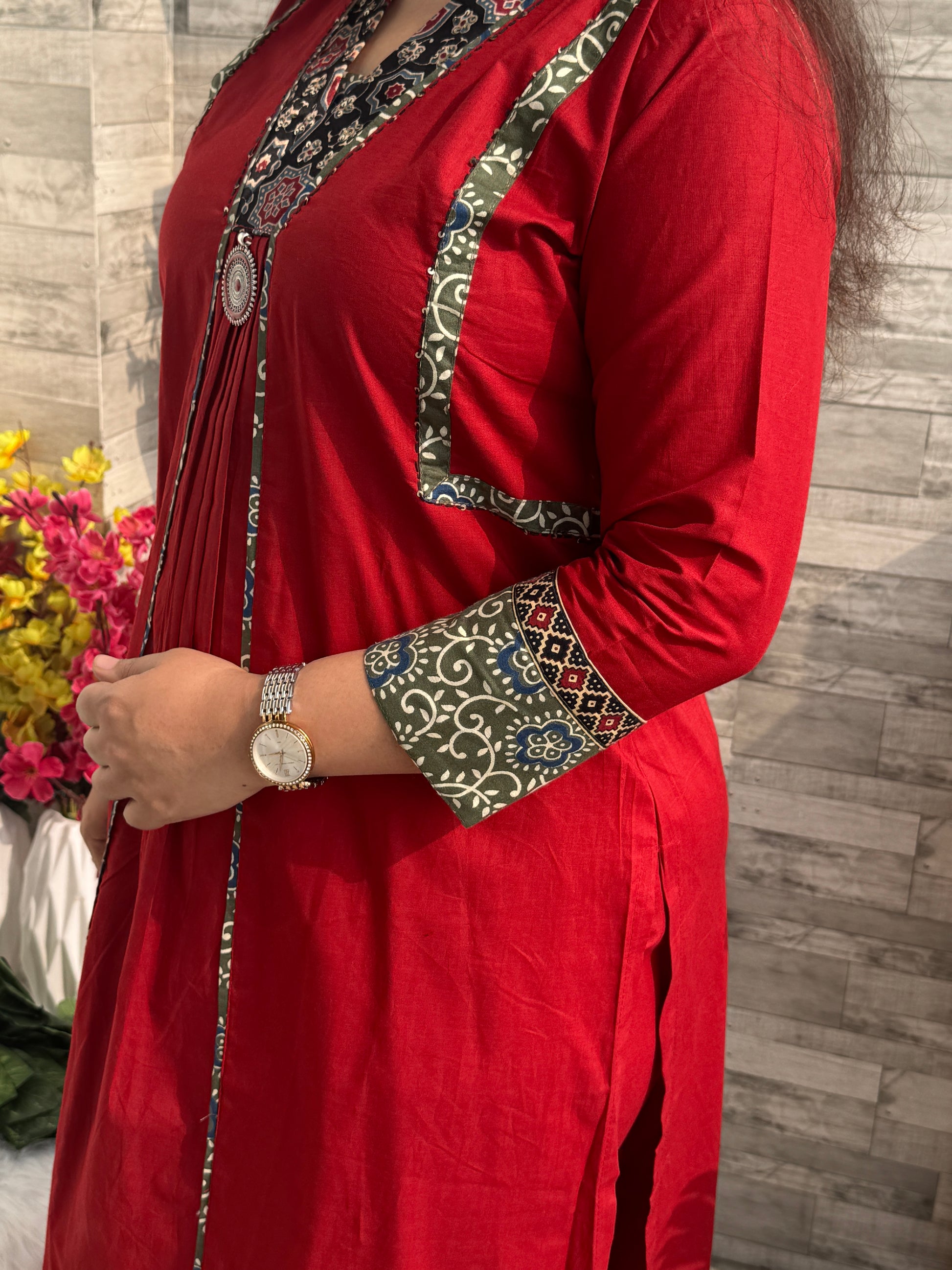 Red Aline 2 piece premium Silk Cotton Suit Set- Red